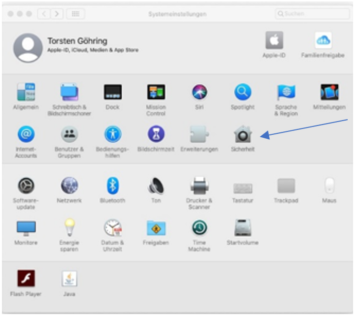 Nun öffnen Sie über „Programme“ die „Systemeinstellungen“ und klicken auf den Button „Sicherheit“.