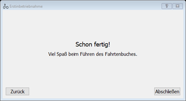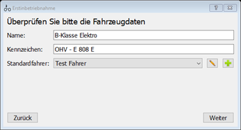 Nach dem Speichern kehrt der Assistent zur Eingabe der Fahrzeugdaten zurück. Haben Sie alle Eingaben geprüft, schließen Sie den Assistenten ab.