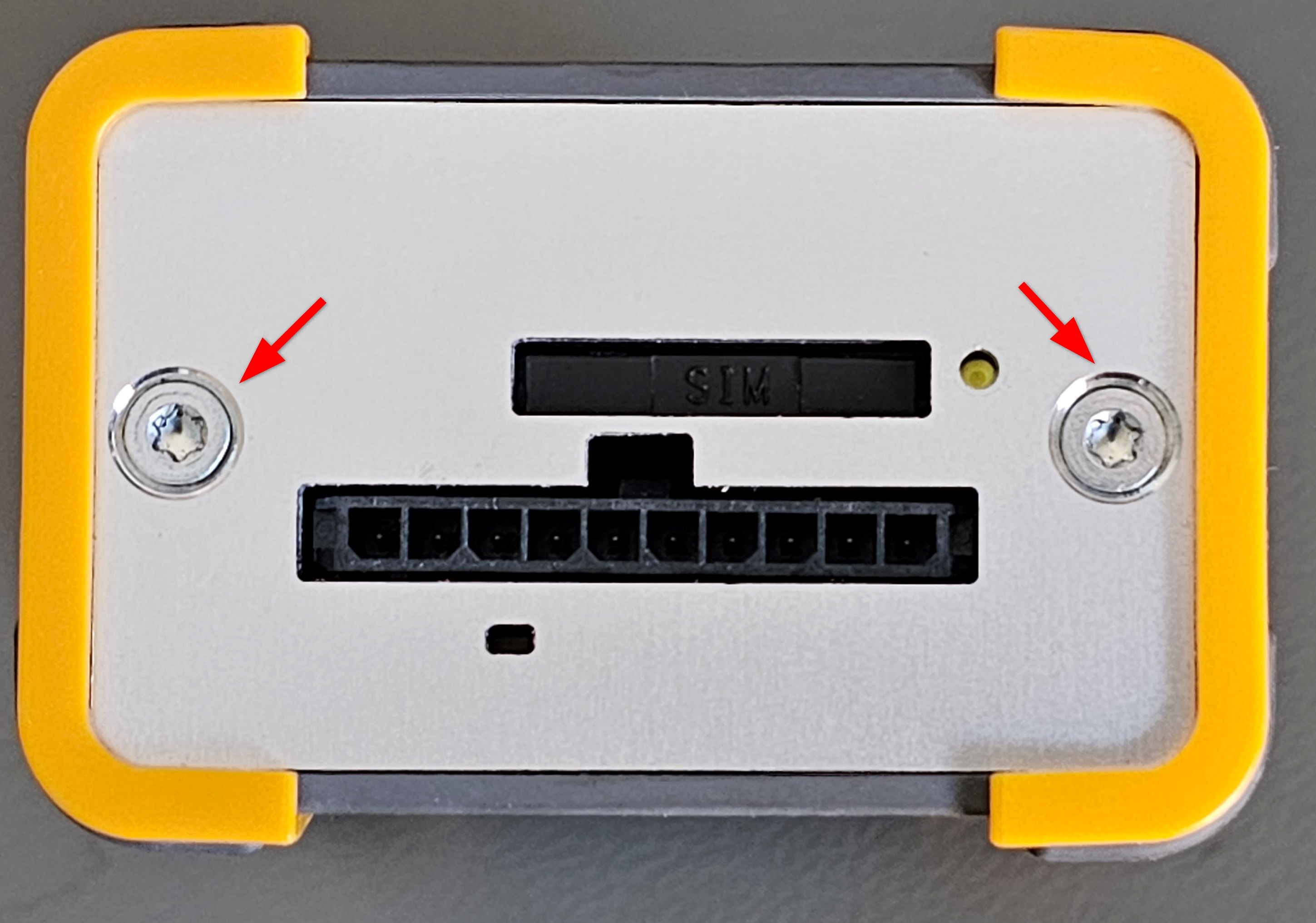 Entfernen sie die beiden Torx-Schrauben an der Seite ohne Antennenanschlüsse.